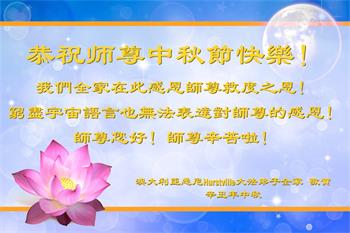 澳洲墨尔本大法弟子四口之家恭祝师父中秋快乐!