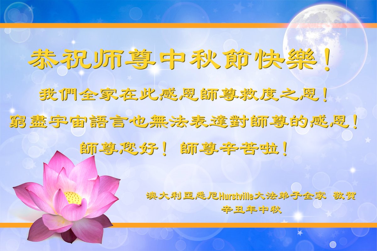 澳大利亚悉尼Hurstville大法弟子全家 敬贺 辛丑年中秋 澳大利亚墨尔本学员恭祝师父中秋快乐!