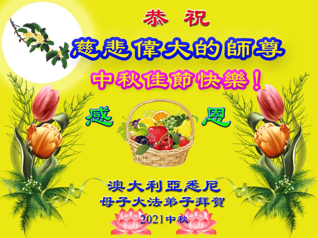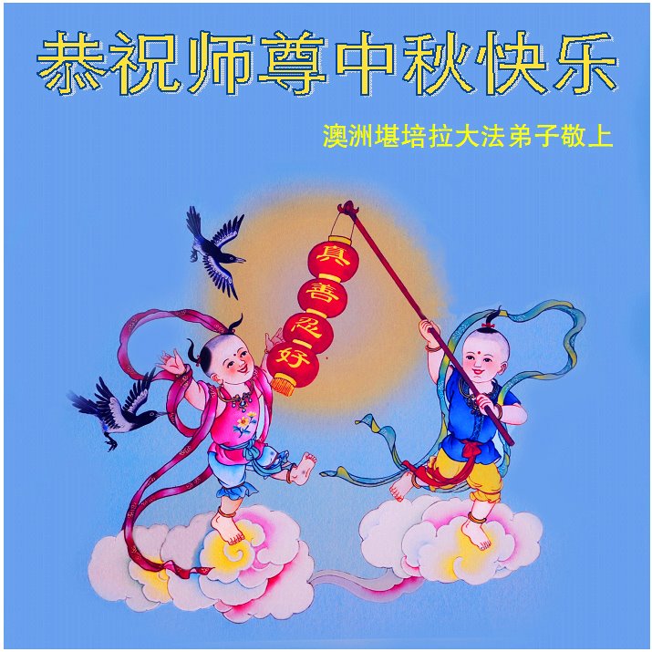澳洲大.纪.元;全体大法弟子恭祝慈悲伟大的师尊中秋快乐! 澳洲大.纪.元;全体大法弟子敬上 澳大利亚悉尼大法弟子一家恭祝慈悲伟大的师尊中秋节快乐!