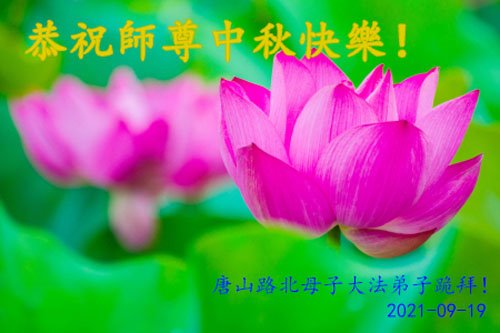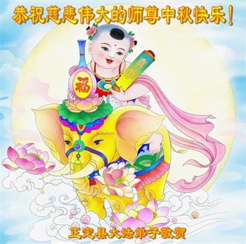 我一定努力修好自己,多救人,并督促儿子多学法,不辜负师尊慈悲苦度! 河北省唐山一家大法弟子恭祝师父中秋节快乐!