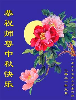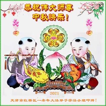 【明慧网二零二一年九月二十一日】 天津市红桥区一老年学法小组大法弟子恭祝慈悲伟大师尊中秋节快乐!师尊您辛苦了!