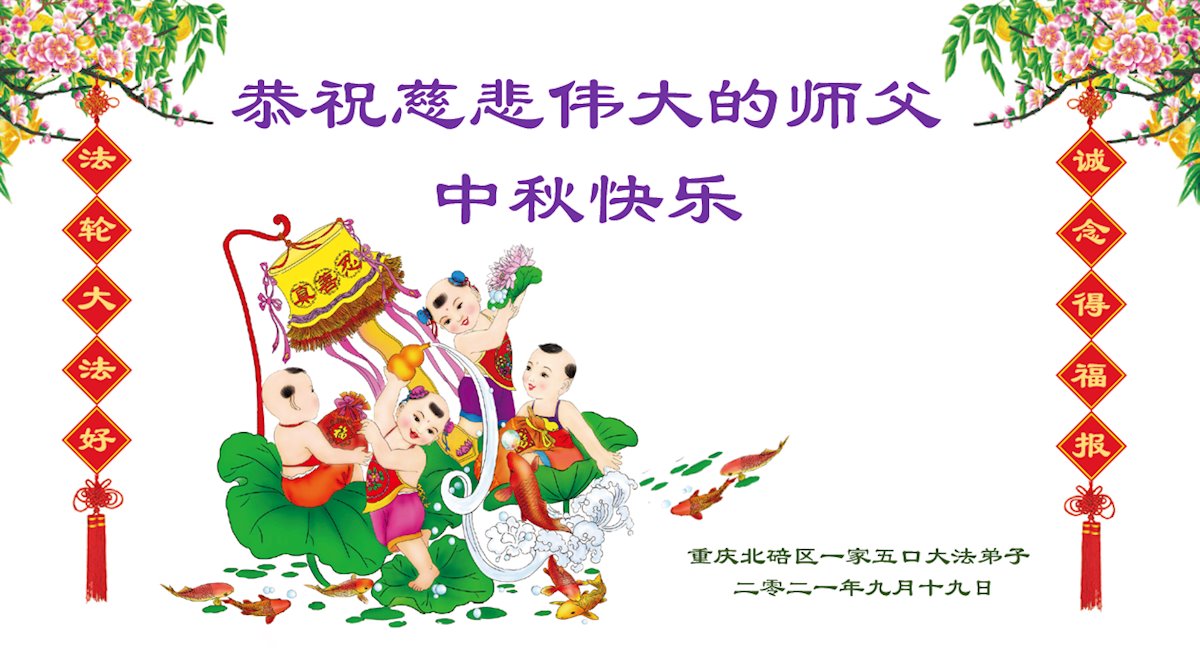 又逢佳节念师尊, 恩重如天难报答。 惟愿精進再精進, 修好自己多救人。 弟子叩拜! 重庆北碚区一家五口大法弟子恭祝慈悲伟大的师父中秋快乐!