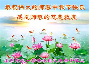 山东省烟台市招远市一学法小组大法弟子恭祝慈悲伟大的师尊中秋节快乐!
