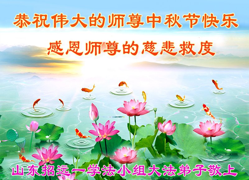 师尊,我们终于得法了!千万年的等待与期盼,无语话师恩。我们会珍惜这一切,盼师尊早回中土。 山东省烟台市招远市一新学员大法弟子恭祝师尊中秋快乐!