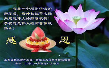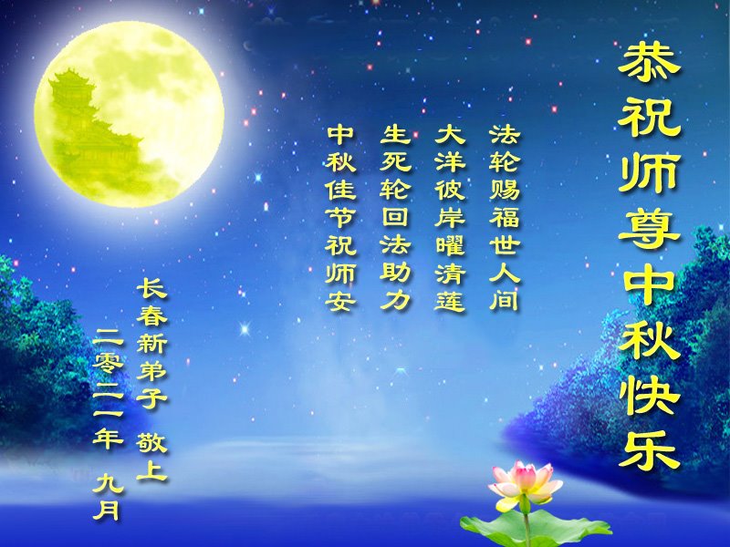 【明慧网二零二一年九月二十一日】 黑龙江省佳木斯新得法的大法弟子恭祝慈悲伟大的师尊中秋节快乐!