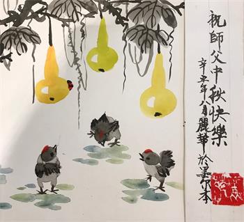 弟子千言万语、万语千言也无法表达对师尊的感恩,弟子唯有勇猛精進,做好三件事,感谢师尊的慈悲苦度! 澳大利亚墨尔本一老年女大法弟子献上两幅画作恭祝师尊中秋快乐!
