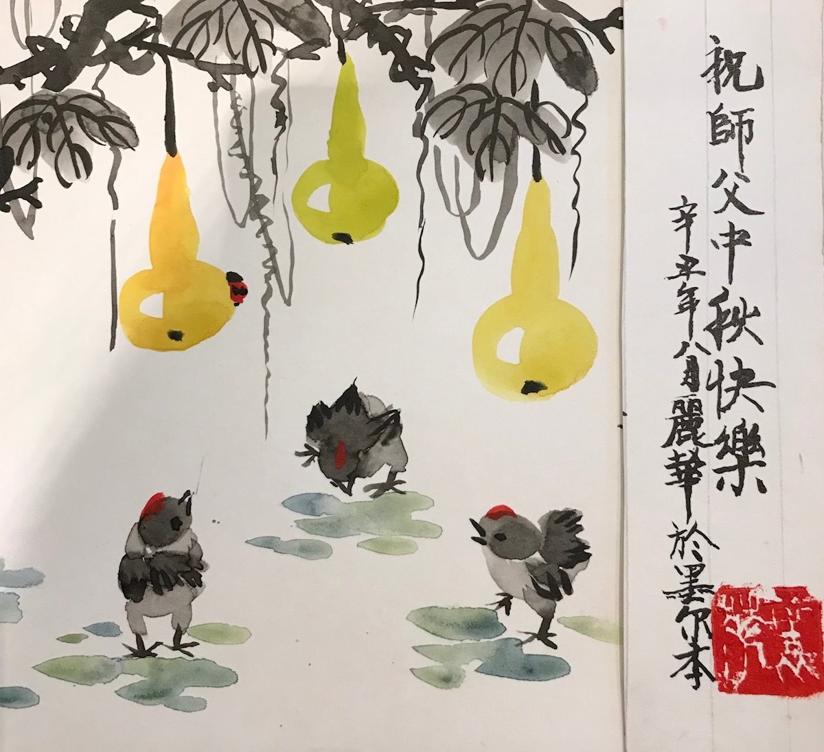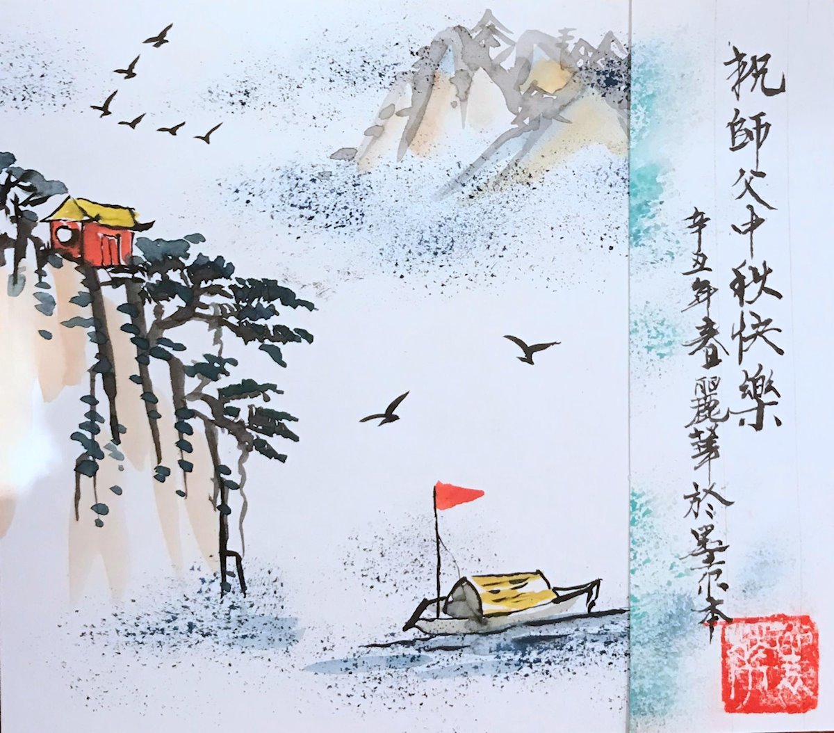 澳洲墨尔本一大法弟子敬献水彩画,恭祝伟大的师尊中秋快乐!
