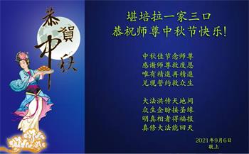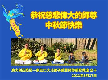 【明慧网二零二一年九月二十一日】 澳洲阿德莱德一家大法弟子叩拜恭祝师父中秋快乐!