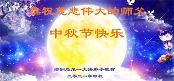 师父,您辛苦了!衷心感谢师尊的慈悲苦度!恭祝师父中秋快乐! 澳大利亚昆士兰全体大法弟子叩谢师恩! 2021年9月15日 澳大利亚墨尔本市一位明真相世人恭祝李大师中秋快乐!