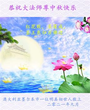 澳大利亚墨尔本一中年女大法弟子恭祝师尊中秋快乐!