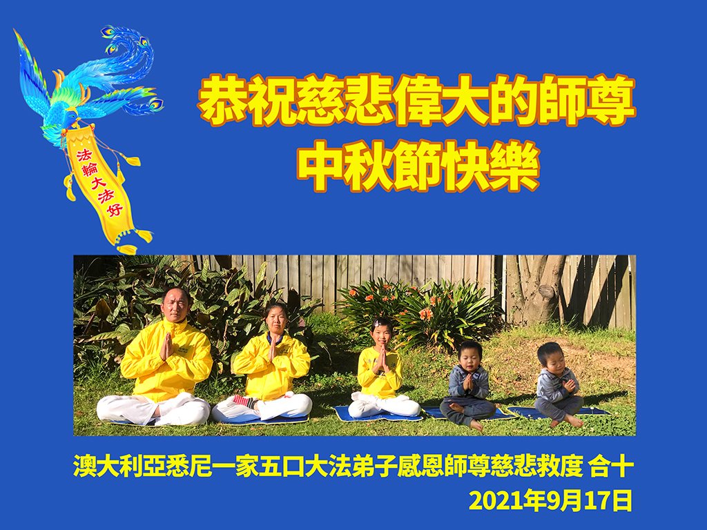 祝师尊中秋节快乐!师尊您辛苦了!您时刻看护着每个弟子,弟子唯有精進以报师恩。 悉尼大法弟子全家恭祝慈悲伟大的师尊中秋节快乐!