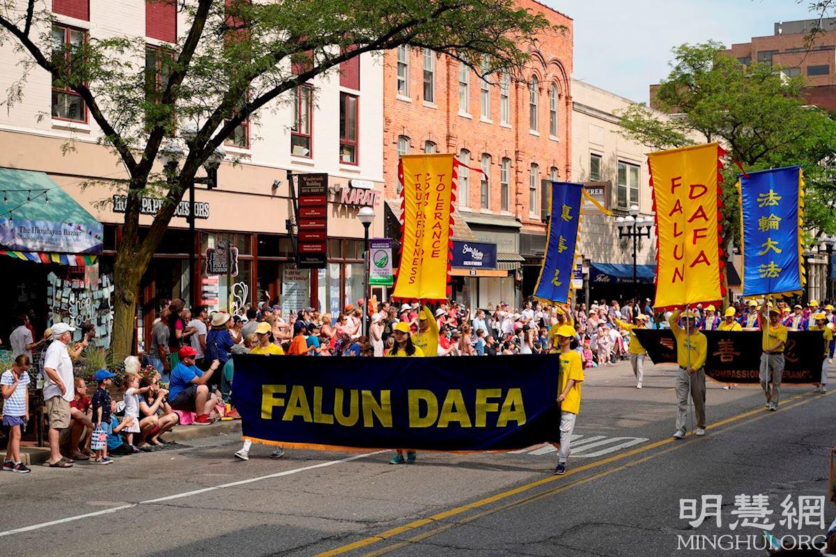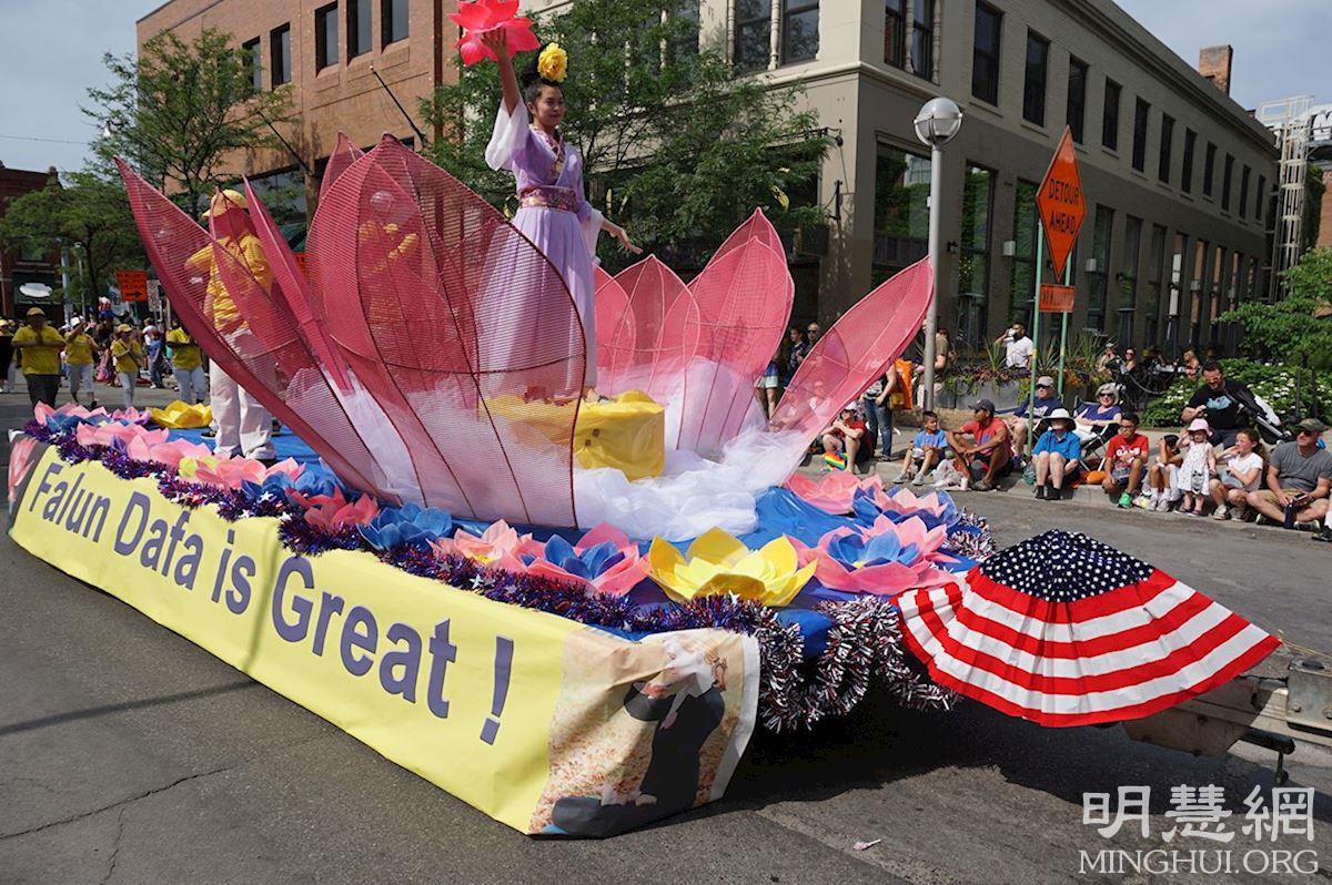 | 【明慧网二零二二年一月二十八日】(明慧记者徐菁密西根采访报道)自二零二零年以来,全世界民众都受中共病毒(武汉肺炎)疫情的影响,个人家庭的健康,社会的秩序等等不安的因素让很多民众感到迷茫和担忧。在壬寅年新年到来之际,部份美国密西根州的法轮功学员们讲述了自己的修炼感言,希望借自己的体会,让更多的人看到希望、找到避开疫情的良方。同时,学员也借此机会,表达自己对法轮功创始人李洪志大师的敬意。 二零二二年是法轮大法弘传世界三十周年,密西根州的法轮功学员遍布各行各业,从大学教授,机械工程师,金融财务师,到媒体记者,医护人员等等。感言中,他们有的回顾自己的人生,修炼法轮功后人生观价值观的提升;有的提到因为自己修炼法轮功,远在国内的家人也跟着得福报;也有的提到自己向海外华人讲真相,让更多的人知道法轮功的美好。  图1~2:二零一九年七月四日,密西根州法轮大法学会应邀参加了当地庆祝美国243岁生日的庆典活动。图为法轮功学员组成的游行方阵和精美花车。 |