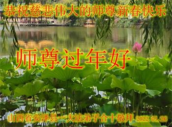 “在向法正人间过渡”阶段,平遥县大法弟子在这“值千金,值万金”的救人抢人的关键时刻,弟子们一定会加倍努力做好“三件事”,不辜负慈悲伟大的师父用巨大的承受换来的宝贵时间。 在新的一年来临之际,山西省晋中市平遥县大法弟子恭祝慈悲伟大的恩师过年好! 2022年1月26日 山西阳泉大法弟子恭祝慈悲伟大的师尊新年快乐!
