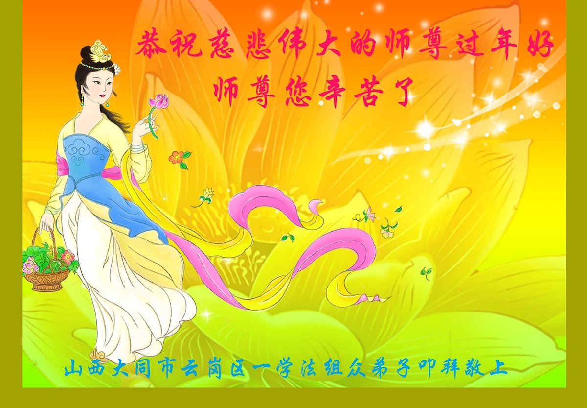 师尊您辛苦了!弟子们感恩师尊慈悲救度! 弟子们在新的一年里唯有精進再精進,多学法、学好法,不负使命,讲真相多救人,不辜负正法时期大法弟子的称号。 山西大同市云岗区一学法组众弟子叩拜敬上!合十 山西大法弟子恭祝慈悲伟大的师尊过年好!