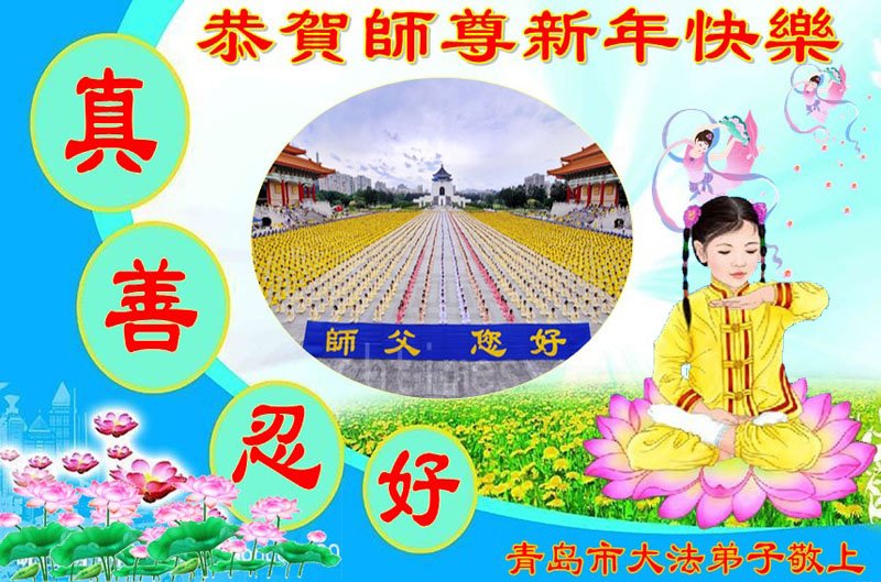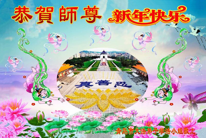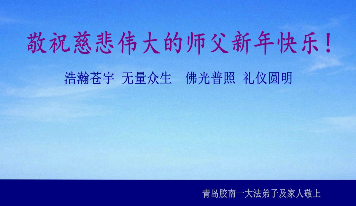 山东省青岛市全体大法弟子向大洋彼岸的师尊敬拜!恭祝慈悲伟大师尊新年快乐!