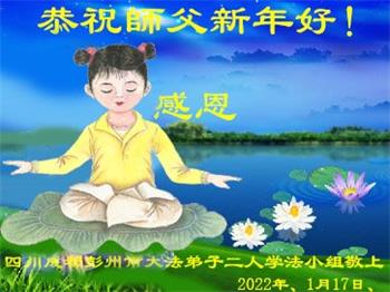 四川成都彭州市大法弟子二人学法小组大法弟子恭祝师父新年好!