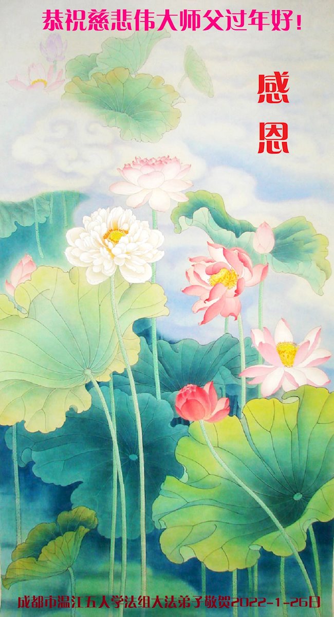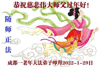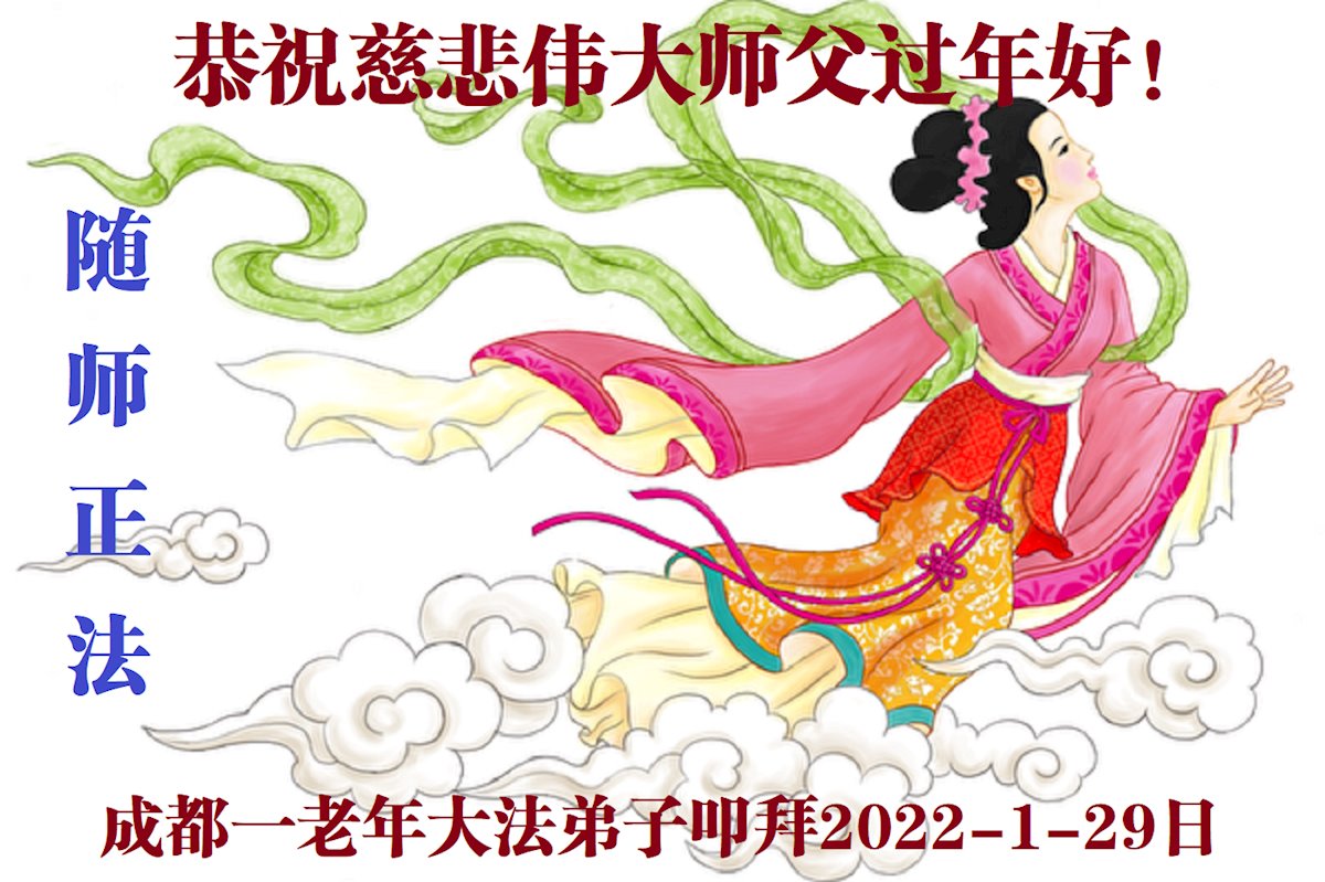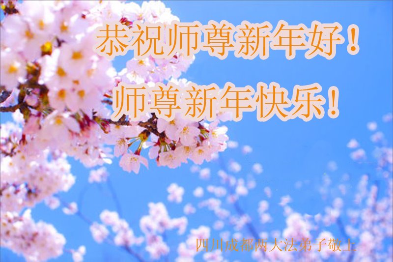 一年一度新年临, 恳请蓝天上的白云, 捎去弟子对师父的一片心, 恭祝师尊过年好! 唯愿师尊笑开心! 深感师父救度的艰辛, 弟子们无以报师恩, 唯有抓紧最后时日多救人, 愿能随师登归程! 四川成都五人学法小组 |