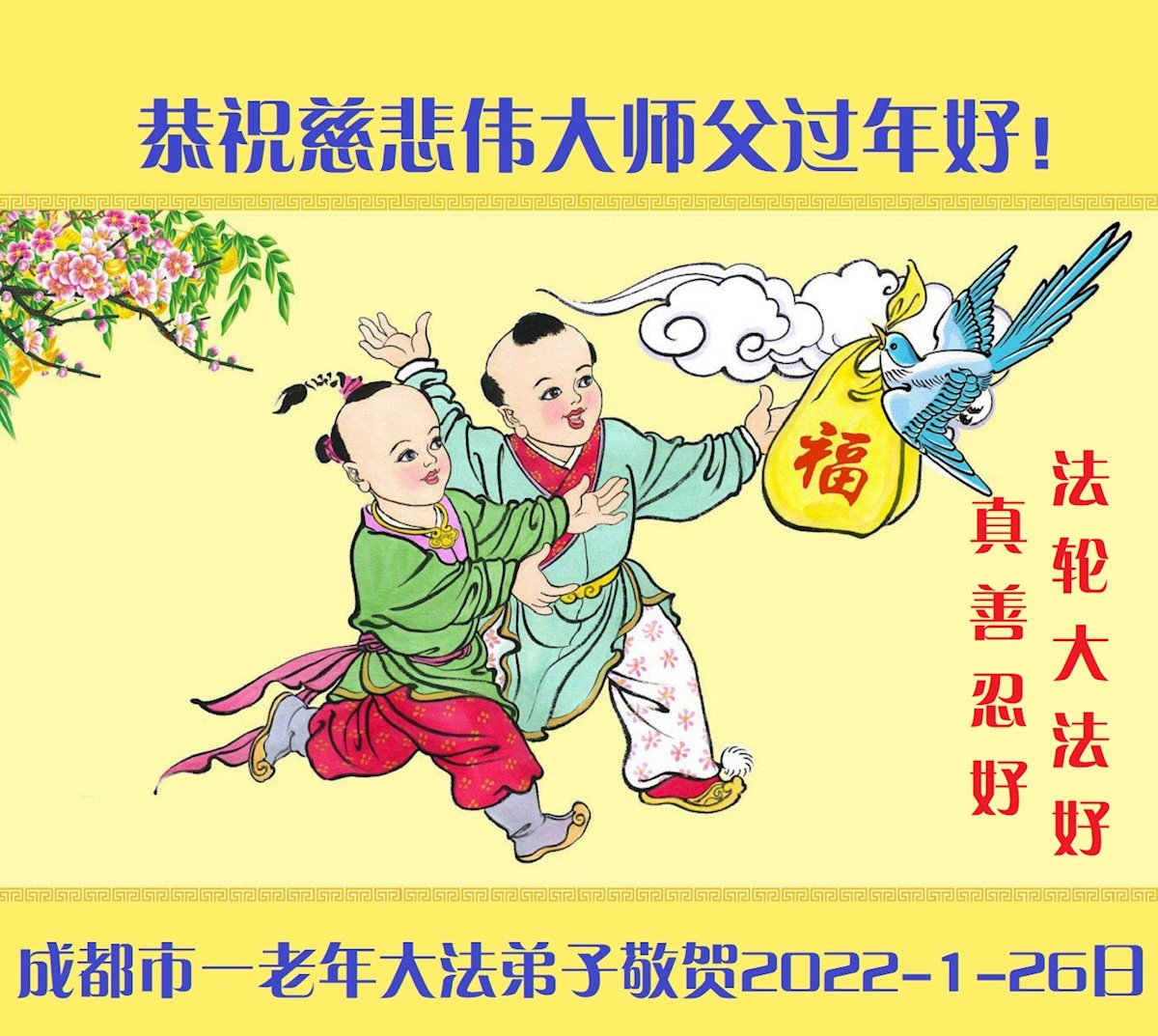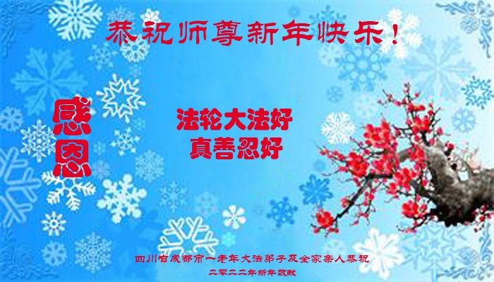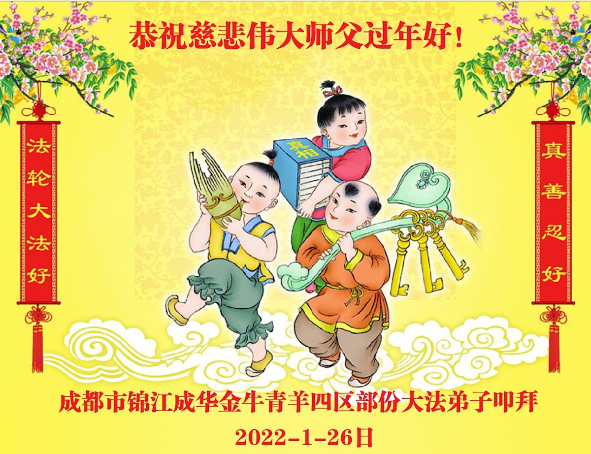 【明慧网二零二二年一月二十九日】 四川成都北门一夫妻大法弟子携家人恭祝师尊新年好!
