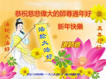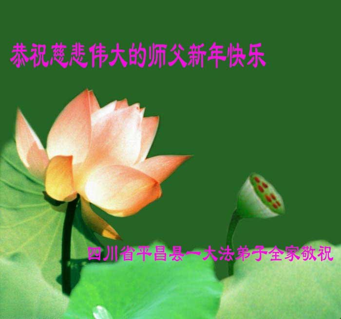 恭祝慈悲伟大的师父新年好! 四川省平昌县一大法弟子全家人敬上 四川省德阳市广汉市二十八名大法弟子恭祝慈悲伟大的师尊过年好!