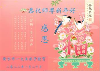 河北省衡水市阜城县大法弟子祝贺师尊新年好!在新的一年里再接再厉,听师父的话,多救人,随师法正人间! 河北邯郸曲周县大法弟子恭祝师尊新年快乐!