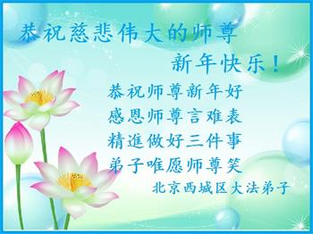 北京西城、朝阳、丰台、通州、东城大法弟子恭祝慈悲伟大的师尊新年好!