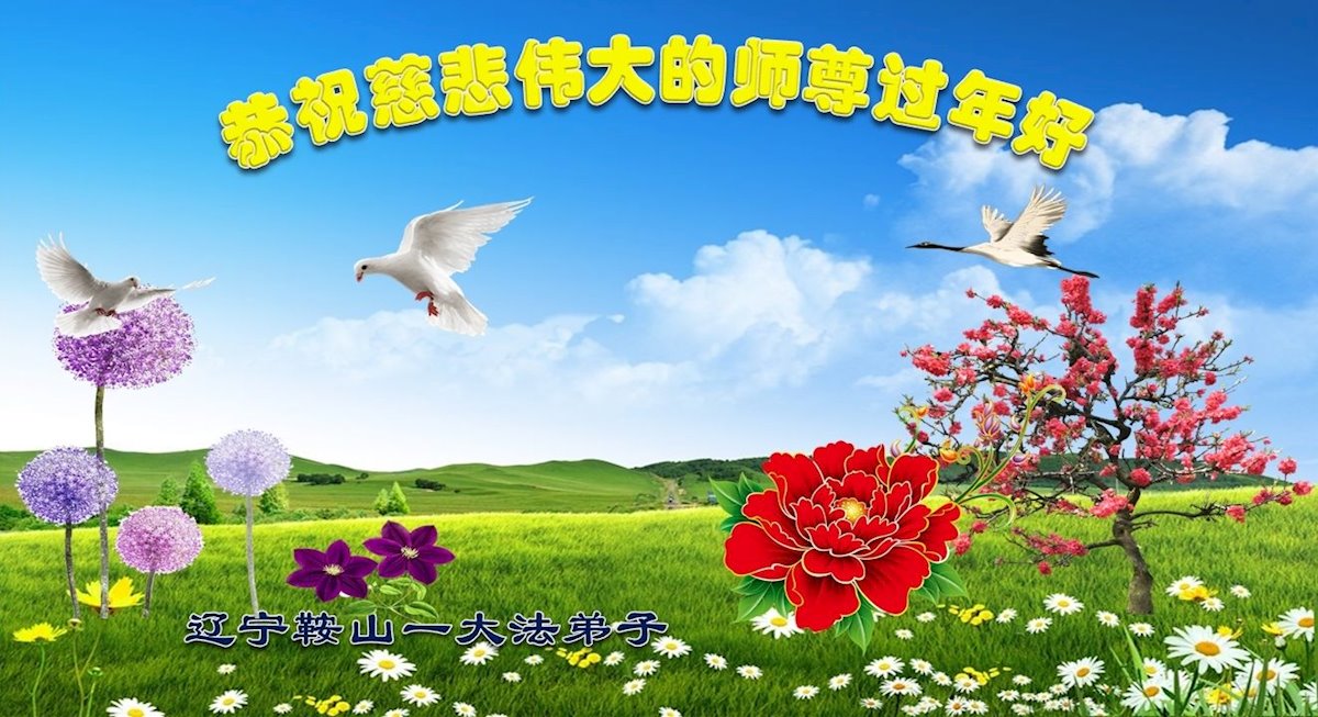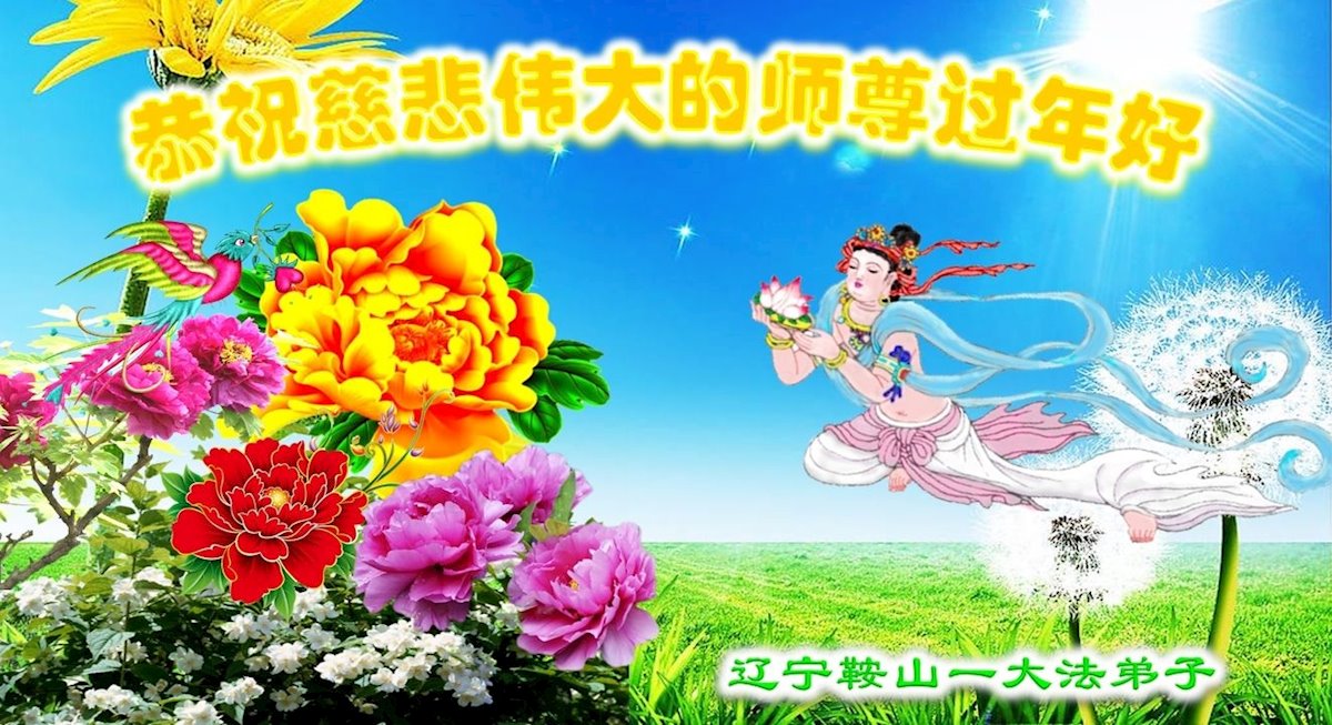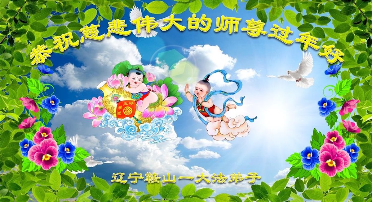 辽宁省鞍山市一大法弟子恭祝慈悲伟大的师尊过年好!