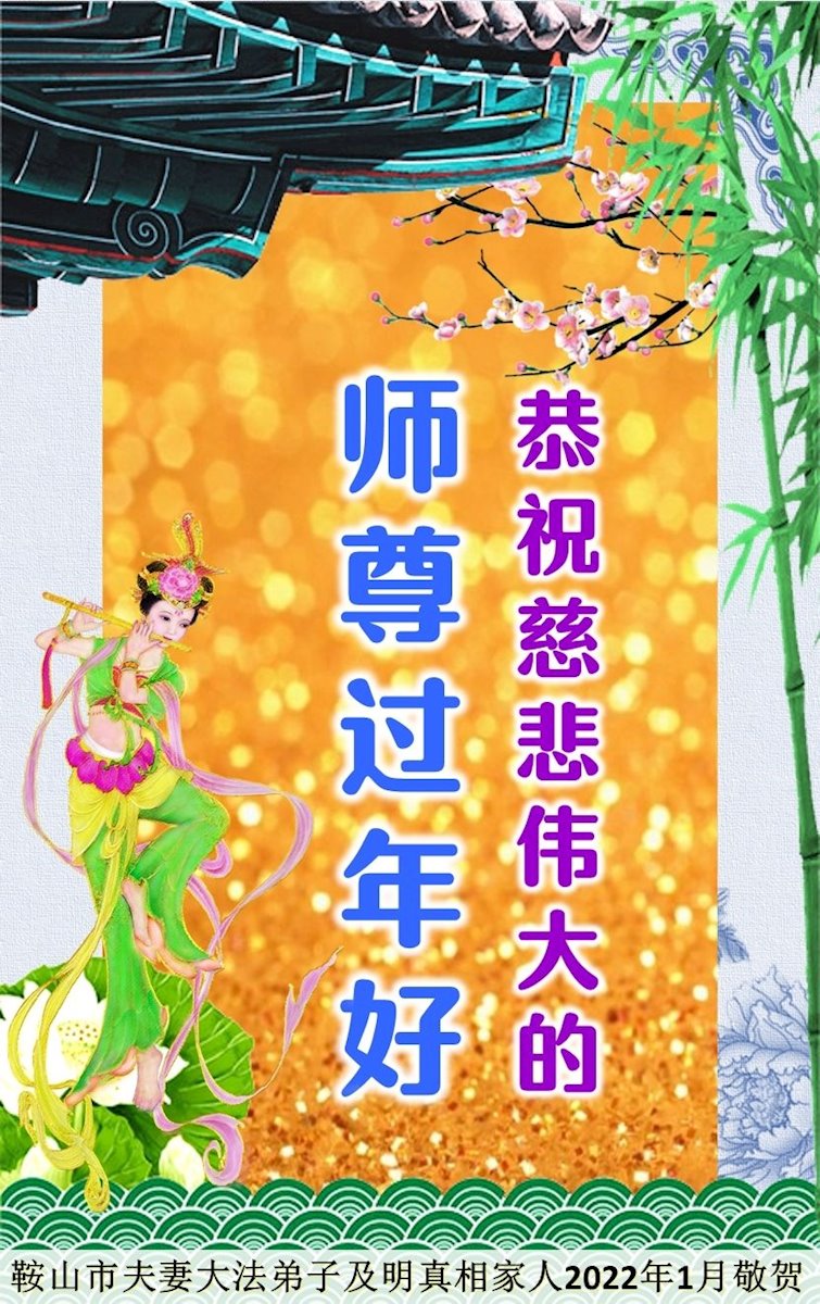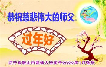恭祝慈悲伟大的师尊过年好,感谢师尊的慈悲救度,叩拜师尊! 鞍山市大法弟子敬贺 2022年1月15日 辽宁省鞍山市姐妹大法弟子恭祝慈悲伟大的师尊过年好!