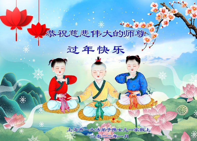【明慧网二零二二年一月三十日】 上海一大法弟子携女儿一家恭祝师尊新年快乐!