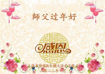 感恩师尊慈悲苦度!无论剩下的路有多难,弟子一定修好自己,紧跟师尊救人脚步不停。 上海市徐汇区全体大法弟子恭祝师父过年好!