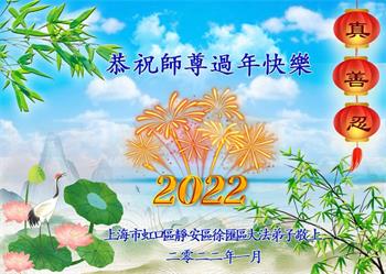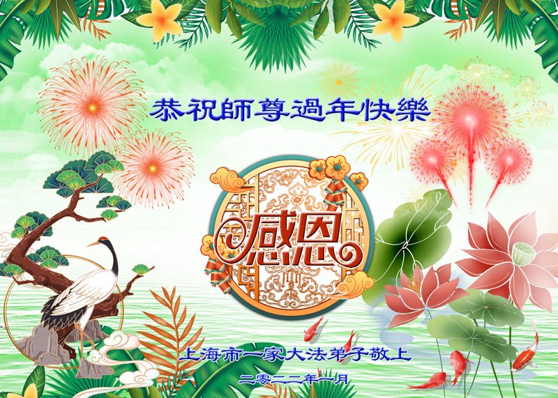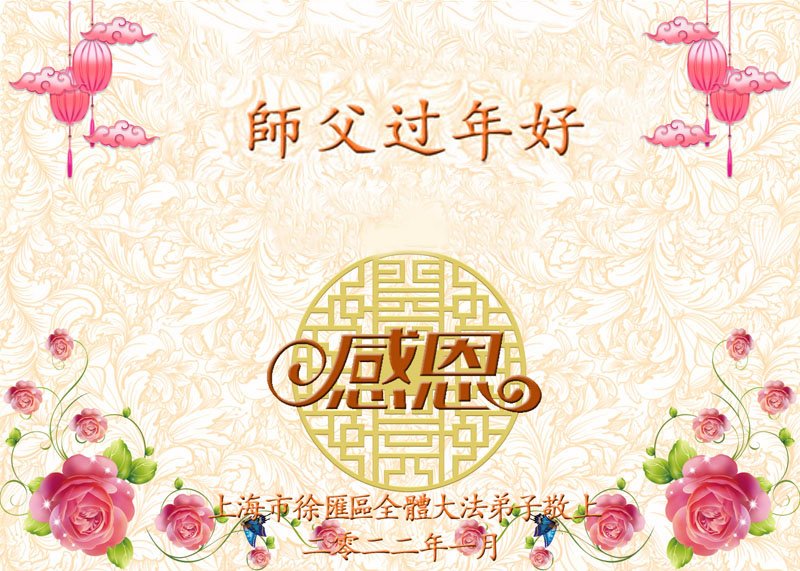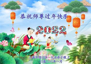 恭祝师父新年快乐! 师父好!师父您辛苦了!感谢师父的慈悲救度! 上海市浦东新区一大法弟子向师父问好! 二零二二年一月二十四日 上海市浦东新区一大法弟子恭贺伟大慈悲的师尊过年好!