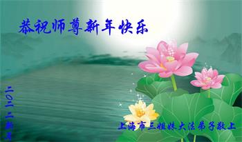 上海普陀区三位大法弟子恭祝慈悲伟大的师尊新年好,在新的一年里弟子会做的更好,多救人,以回报师尊救度之恩! 上海闵行区一学法小组大法弟子恭祝师尊新年快乐!弟子叩拜!