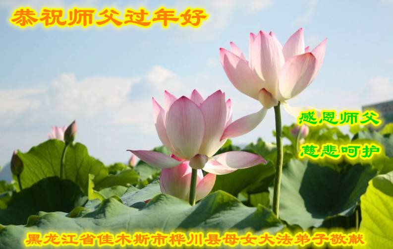 在新年来临之际共同祝愿师父过年好!我们携手共同配合共同升华,共同促進、相互叮咛,做好三件事,多实修,完成史前大愿! 黑龙江省佳木斯一学法小组大法弟子恭祝师父过年好!