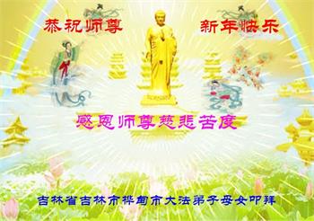 感谢师尊慈悲苦度!用尽人类语言也无法表达弟子的感激之情,唯有在修炼路上,时时、事事严格要求自己,做好三件事,真修实修,完成使命,跟师父回家。 吉林市三位大法弟子恭祝师尊过年好!