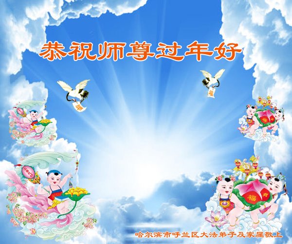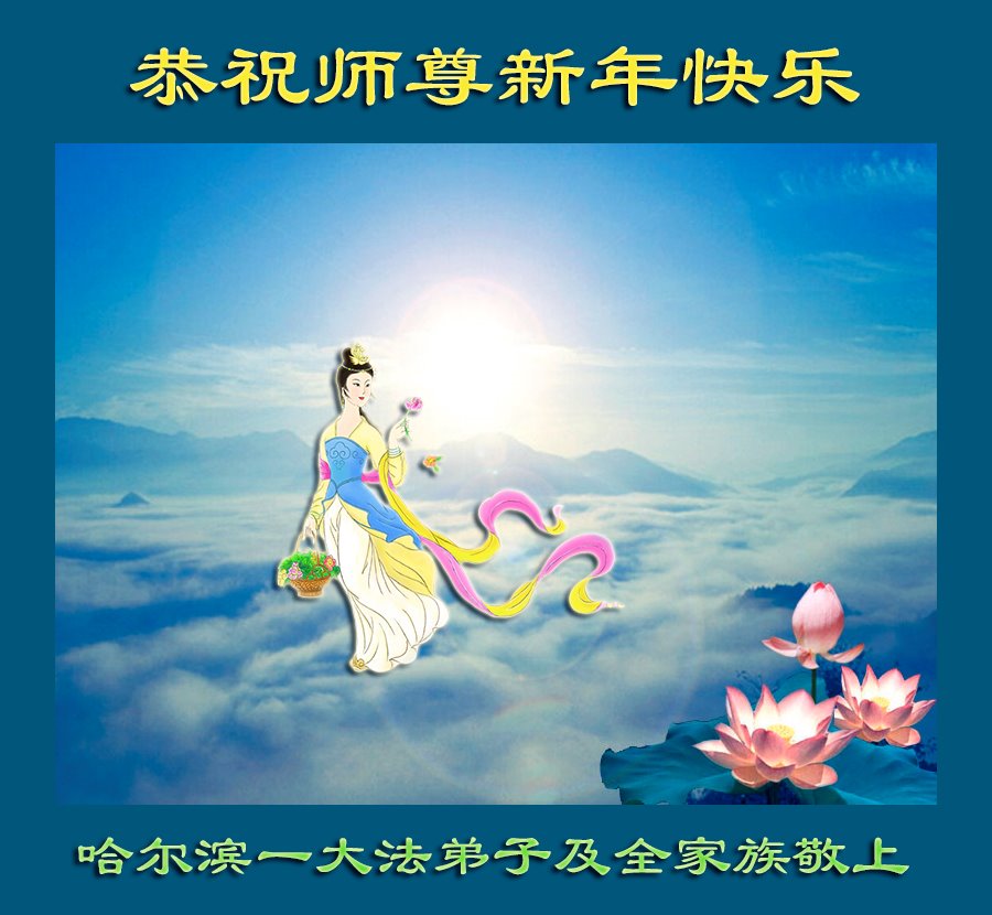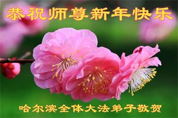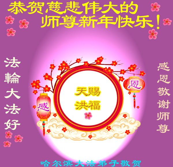哈尔滨大法弟子恭祝慈悲伟大的师尊新年快乐! 感恩师尊慈悲救度,法轮大法好! 黑龙江省哈尔滨市全体大法弟子恭祝师尊新年快乐!