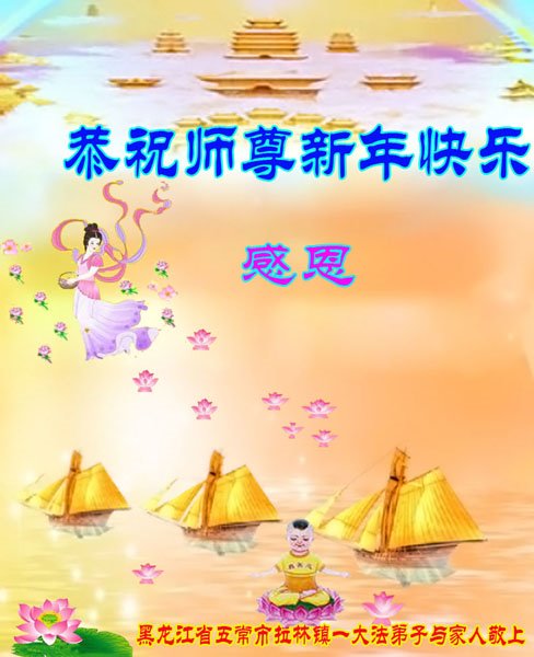 黑龙江省哈尔滨一大法弟子及全家族恭祝师尊新年快乐!