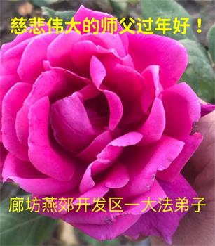 河北廊坊瑞丰道一学法小组叩拜师尊!师父您辛苦了!在这乱世中,我们摆正自己的位置,多救人。 河北省廊坊燕郊开发区大法弟子恭祝师父过年好!