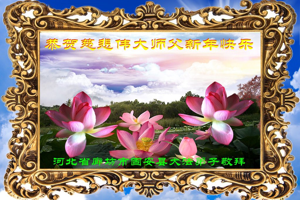 祝师父过年好!我们走好师父安排的修炼路,修好自己,多救人。 河北省廊坊市固安县大法弟子恭祝慈悲伟大的师父新年快乐!