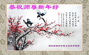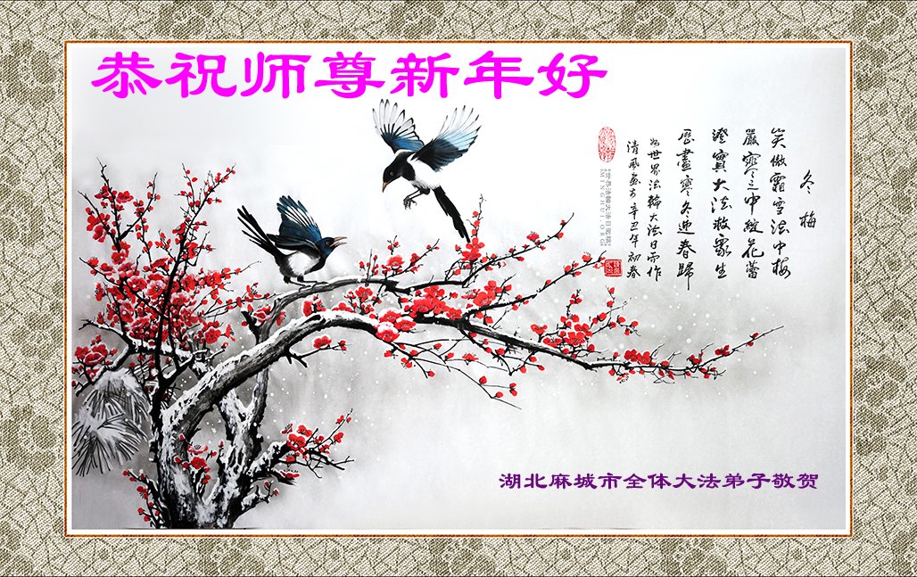 冰天雪地梅姿灿,傲霜凌寒本性显。 末劫乱世得大法,再苦再累心也甘。 学法修心炼金体,正念除恶洪微间。 三件事情都抓紧,完成使命随师还。 湖北省黄冈市浠水县全体大法弟子恭祝师尊新年快乐!