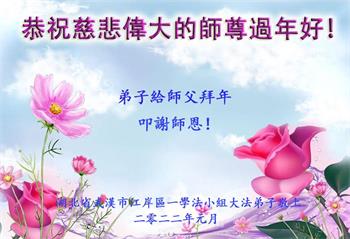 弟子及家人感恩师尊教诲和加持!我们会多救人,精進实修,圆满随师还。 湖北省武汉市江岸区一学法小组大法弟子恭祝师尊过年好!