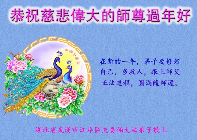 湖北省武汉市江岸区夫妻大法弟子恭祝师尊新年快乐!