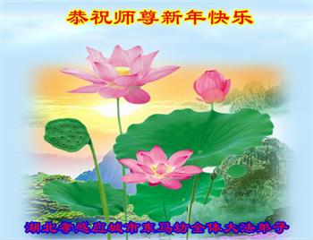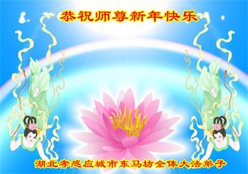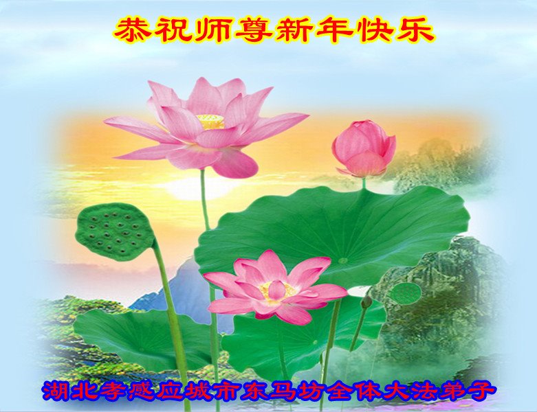 湖北孝感应城市东马坊全体大法弟子恭祝师尊新年快乐!