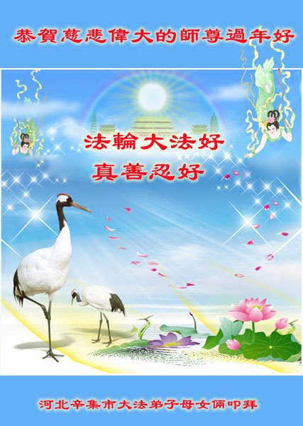 弟子今后按照师父的要求做好三件事,紧跟师父的正法進程! 河北省石家庄市辛集市大法弟子恭祝师父过年好!