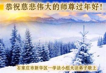 感谢师父慈悲救度!弟子们一定要努力做好三件事,以报师恩。 河北省石家庄市一学法小组向师父拜年!祝师父新年好!