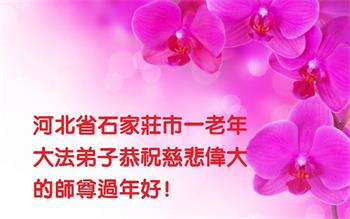 河北省石家庄市长安区一老年大法弟子恭祝慈悲伟大的师尊过年好!