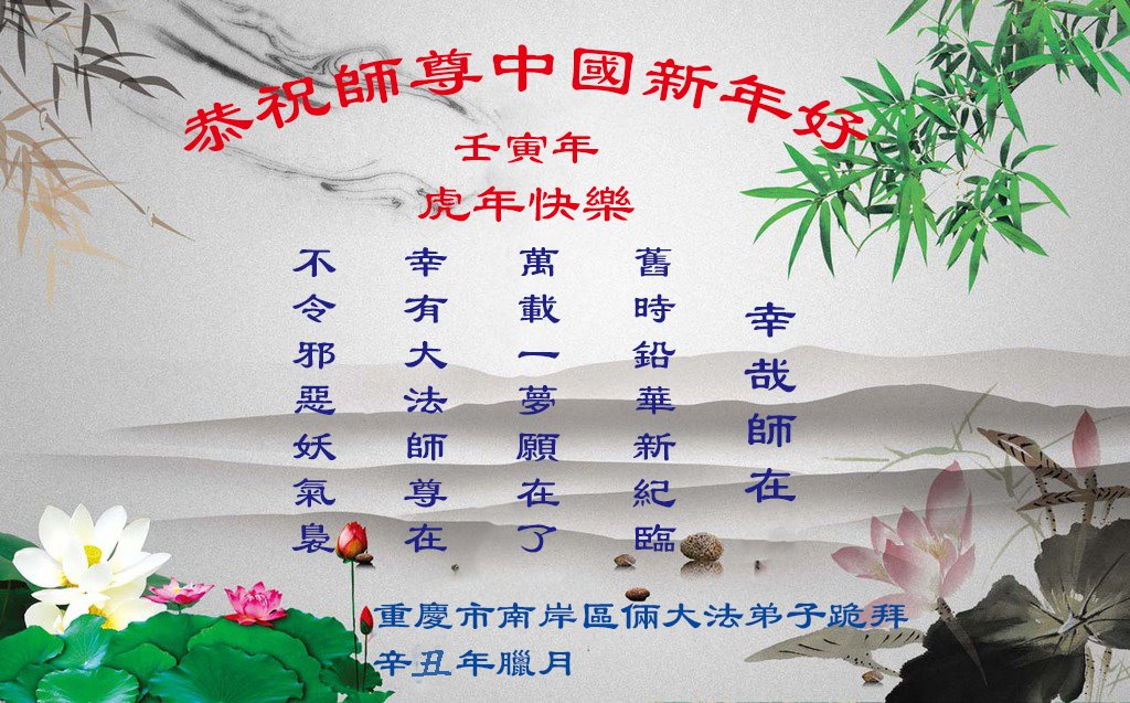 恭祝师尊中国新年好!虎年快乐! 重庆市南岸区两位大法弟子跪拜 辛丑年腊月 重庆市长寿区大法弟子恭祝慈悲伟大的师尊过年好!