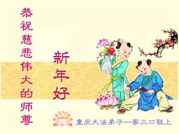 重庆大法弟子一家三口恭祝慈悲伟大的师尊新年快乐!