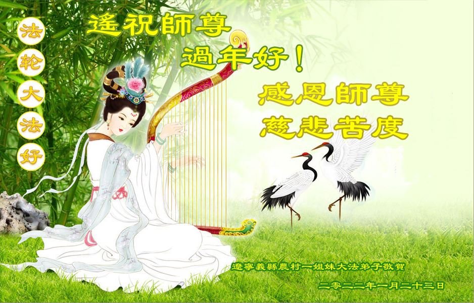 师父好,师父辛苦了!感谢师父一路保护弟子,保护家人。法轮大法好,真善忍好。叩拜师父! 辽宁省锦州市义县农村姐妹大法弟子恭祝慈悲伟大的师尊过年好