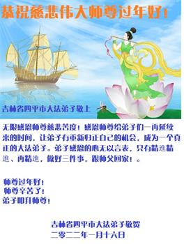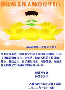 【明慧网二零二二年一月三十日】 吉林省四平市伊通县大法弟子敬祝师尊新年快乐!