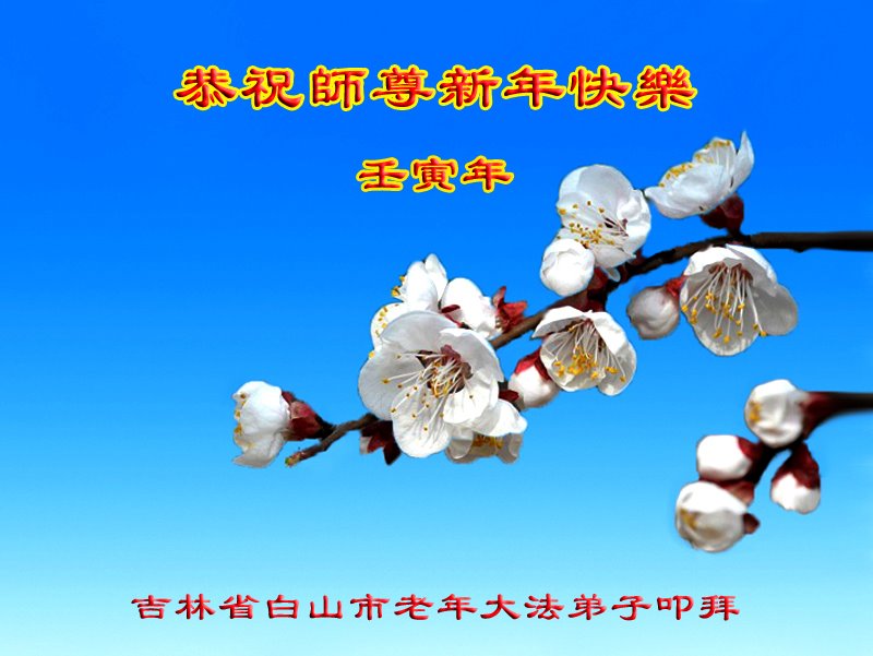 在此千载难逢的特殊历史时期,有幸能得到师尊的亲自救度,无比荣幸!叩谢师恩! 吉林省白山市老年大法弟子恭祝师尊新年快乐!