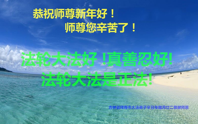感恩师尊慈悲救度!谢谢师尊一路看护!师尊辛苦了!我们会在有限的时间里互相配合做好三件事,多学法,修好自己,多救人,跟师尊回家! 吉林省松原市长岭县全体大法弟子恭祝慈悲伟大的师尊新年快乐!
